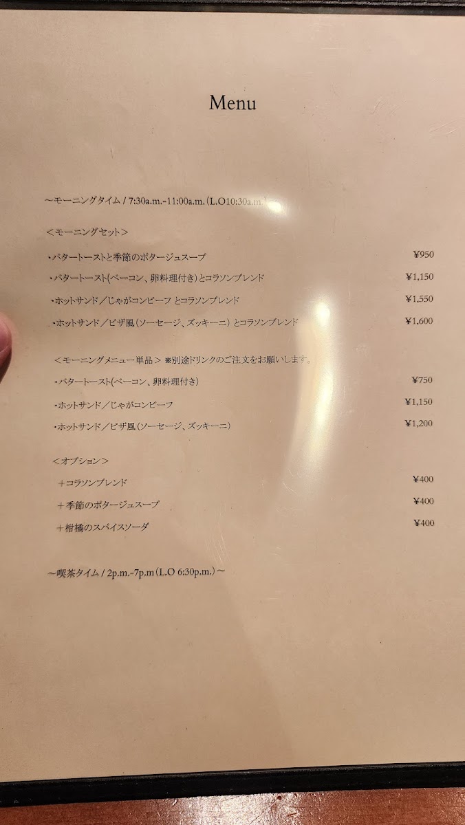 For those early risers seeking something heartier, the モーニングメニュー (Breakfast Special) offers a satisfying selection. The バタートーストと季節のポタージュスープ (Butter Toast and Potage Soup) creates a warm symphony of taste with its smooth seasonal soup complementing crisp buttered toast—perfect for energizing your day at just JP¥1,200.