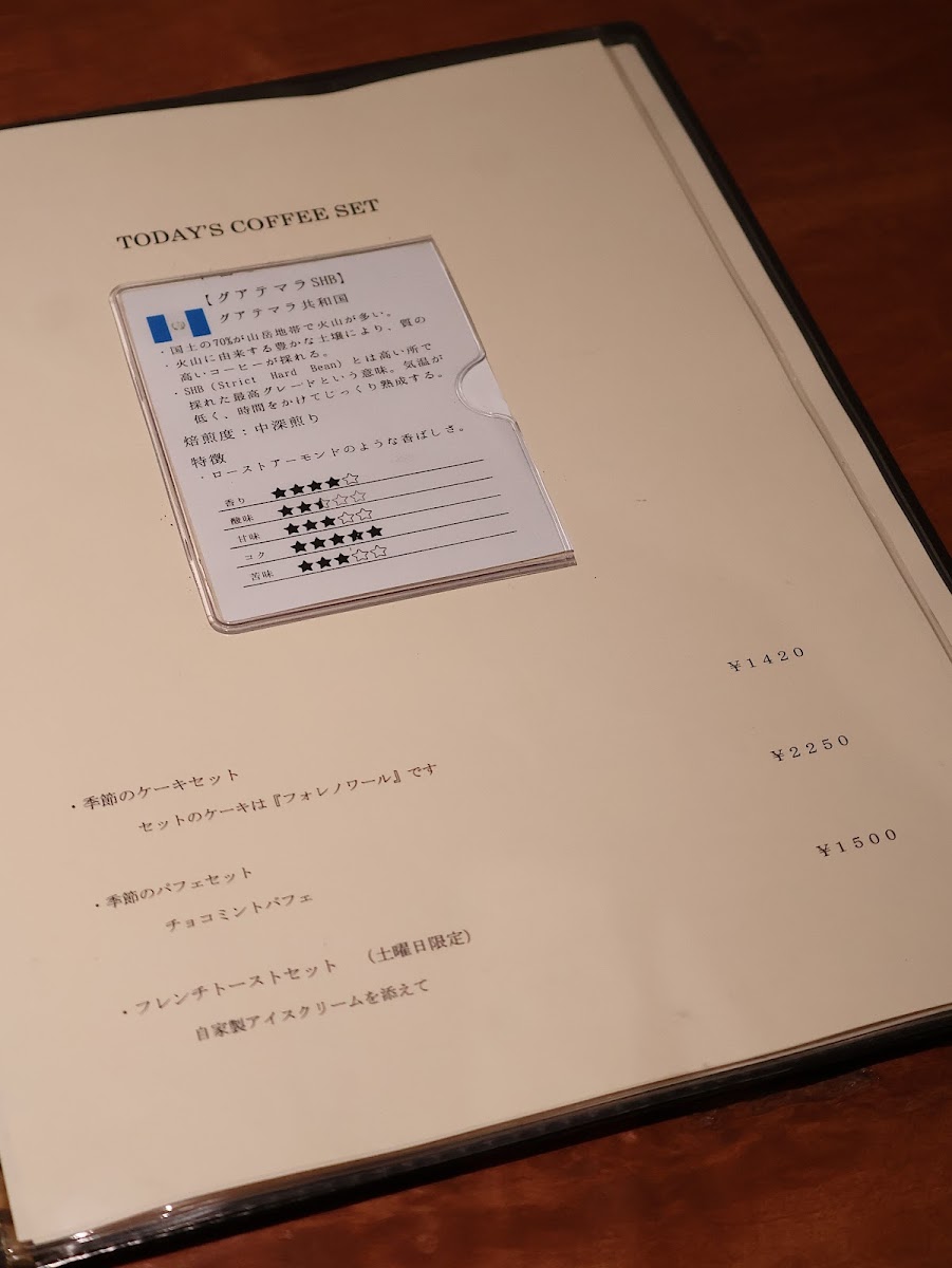This café specializes in an array of carefully crafted dishes that showcase both simple comforts and decadent treats. Among their highlights is the フレンチトーストセット (French Toast Set), available exclusively on Saturdays, where fluffy French toast meets the rich flavors of the day’s coffee, all beautifully accompanied by a scoop of ice cream. At only JP¥1,500, it’s a sweet escape from the ordinary.